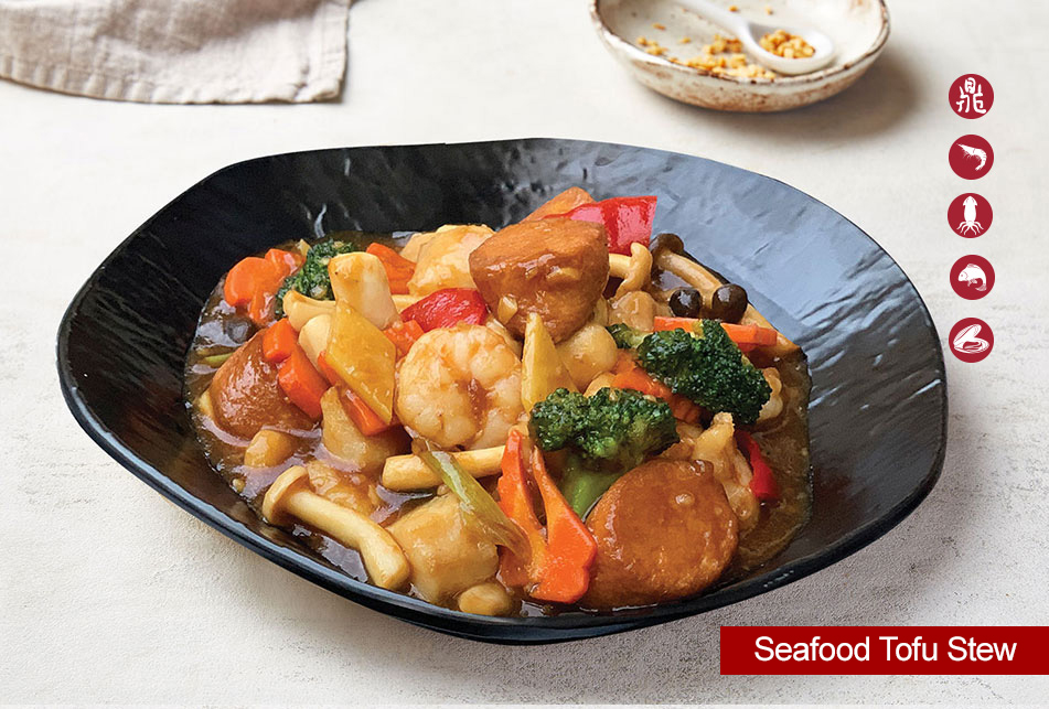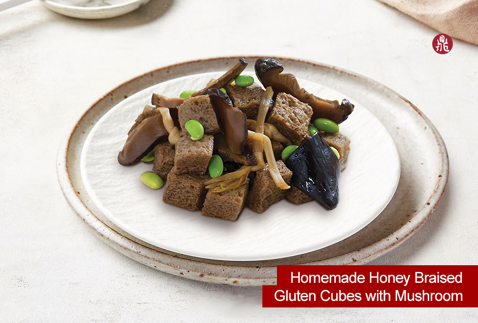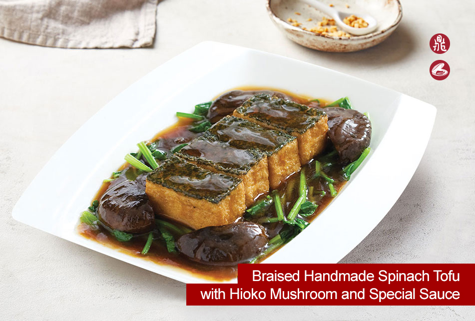 - Braised Handmade Spinach Tofu with Hioko Mushroom and Special Sauce