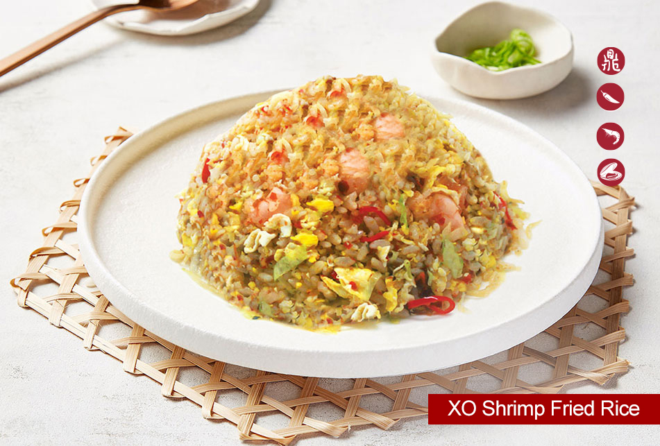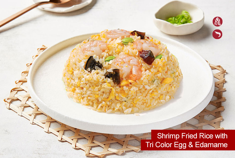 - Shrimp Fried Rice with Tri Color Egg & Edamame